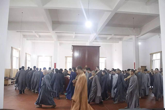 每日大众凌晨四点三十分闻板声起床,五点进禅堂开始早课香,全天行行坐坐,共十六支香。除问话、“小参”交流外,本次禅修全程止语。一律不得使用手机、电脑等通讯设备。大众万缘放下,用功办道。行住坐卧,不离当下。