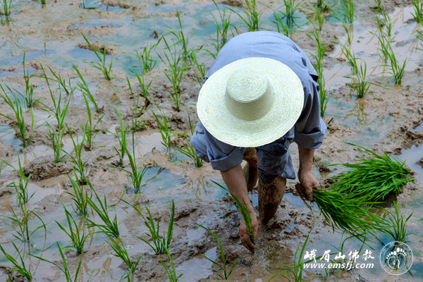 5月11日,又到插秧时节,永寿大和尚带领峨眉山佛协部份法师、员工赴峨眉山柳江光明寺秧田插秧,实践“农禅并重”的禅宗文化。