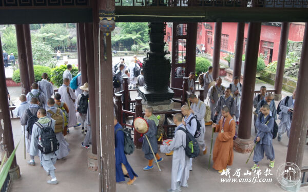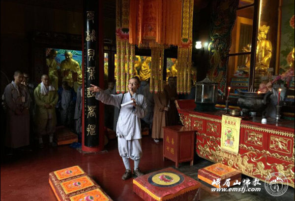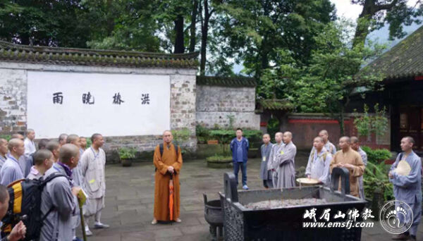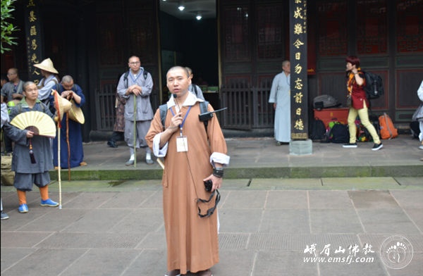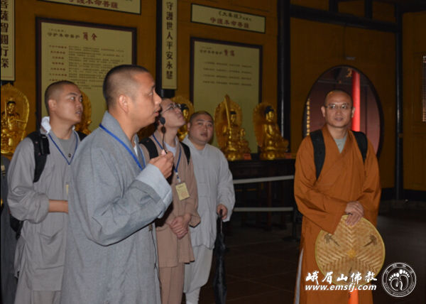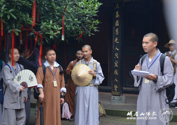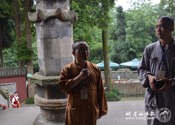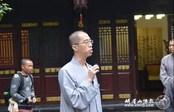 此行也是佛学院学僧的毕业参学,法师们走进峨眉山,实地了解峨眉山的人文历史和自然风光,践行普贤菩萨的行愿精神,并且安排了佛学院学僧代表对沿途十大精华寺院的相关历史、人文典故和普贤菩萨十大愿进行现场讲解,互通心得,取长补短,最后由佛学院法师进行指导、纠正和补充。