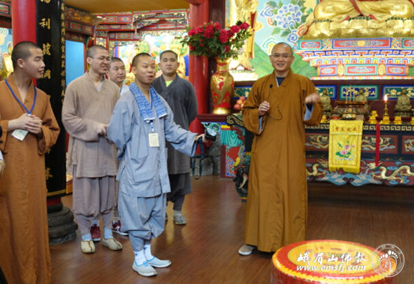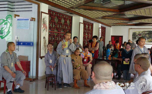 第二天早上用餐过后,佛学院的怀之法师为大家介绍了洗象池的传说和概况,道持法师和普了法师给大家详细讲解了普贤菩萨的常随佛学愿。“常随佛学”愿主要强调要向佛学习,学习佛从初发心就精进不退的精神,学习佛为法忘身的精神,学习佛的“种种难行苦行”、终于成就大菩提的精神,以及为化导众生而自我牺牲的菩萨道精神。
