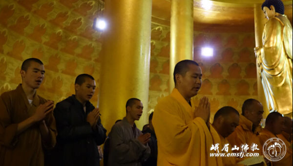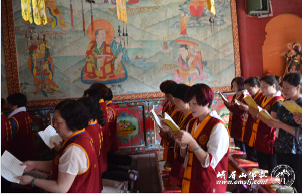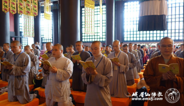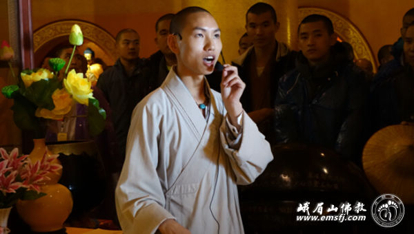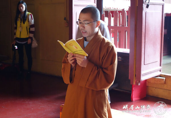 之后在慧因法师的带领下于洗象池大雄宝殿内发普贤菩萨第八大愿:常随佛学。