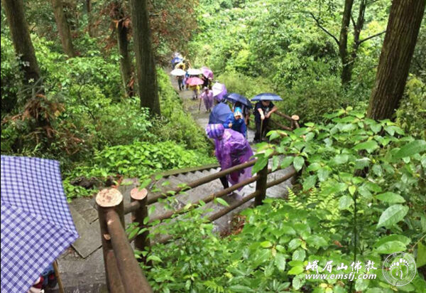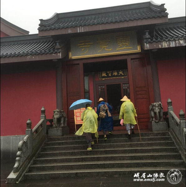 离开洗象池,经过两个多小时的路程,百人团冒雨来到了雷洞坪灵觉寺。