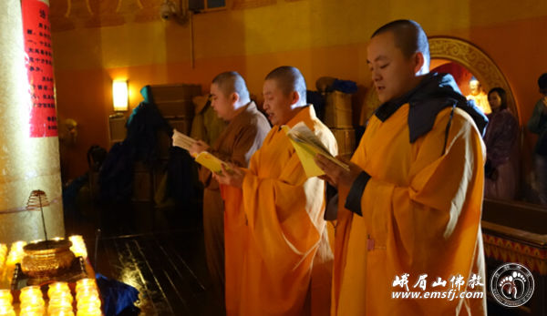 之后由镇觉法师、昌林法师、徳印法师带领大家发十大行愿中的最后一愿、普贤菩萨第十大愿:普皆回向。随后大众以至诚之心恭诵普贤十大愿之重颂:所有十方世界中,三世一切人师子。我以清净身语意,一切遍礼尽无余.....诵经声声吸引着众多游客,一起发愿,一起祈福!