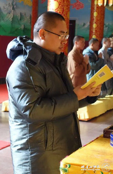 之后在满霖法师的带领下,在报国寺大雄宝殿内虔诚发普贤菩萨第二大愿:称赞如来。发此愿可以让大家获得一种待人处世的方法,这就是:真心欣赏与赞美他人,这也是一种人生智慧,得到这种智慧并运用于我们的生活中,必将受益无穷。称赞要发自深心,要深信不疑地接受、深信不疑地理解十方世界中充满诸佛、菩萨,相信佛说的法是真实不虚的。