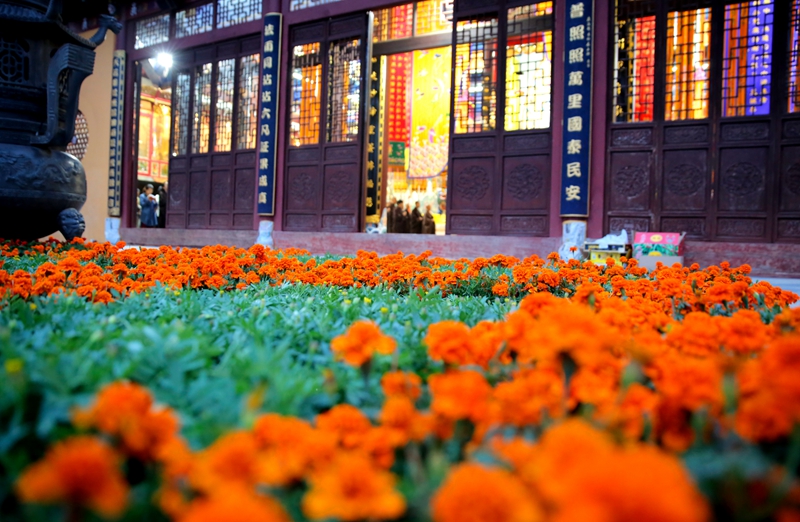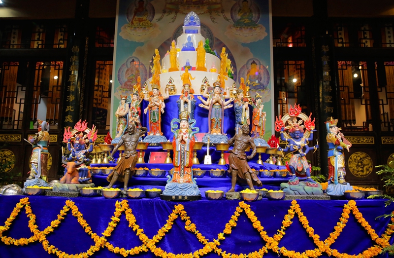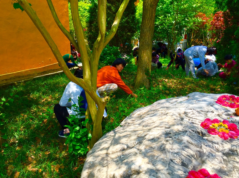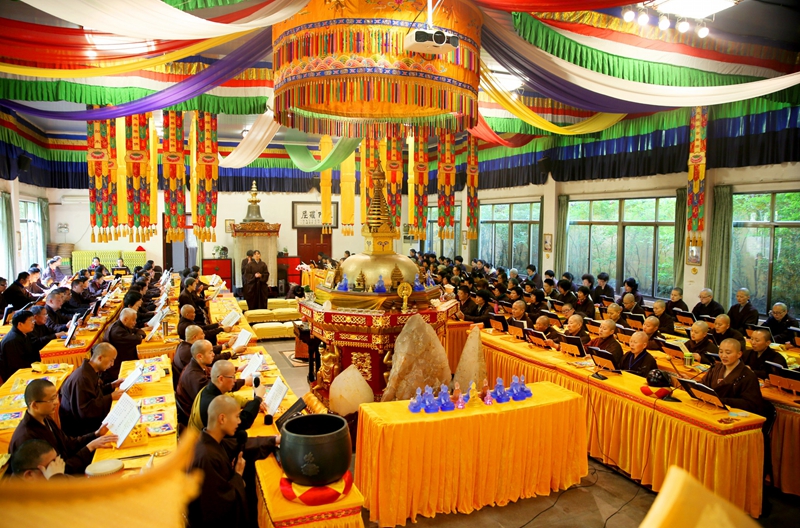暮春时节,花漫于野,林翠于峦,鸣鸠拂其羽,戴胜降于桑。群山环抱,危峰入云,龙溪瀥瀑,缥碧见底,而櫲樟松楠,轩邈直指,细草芳英,香气蓊勃。皎皎春晖中,清景如画的慧日禅寺,为了庆祝我们刚刚胜利召开的全国宗教会议,特意布坛建了药师佛坛城。在国际国际劳动节,开启了为期两日的《药师琉璃光如来本愿功德经》诵读法会,馨香祷祝,祈愿世界和平,国泰民安,所有的劳动者们幸福安康。