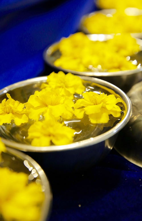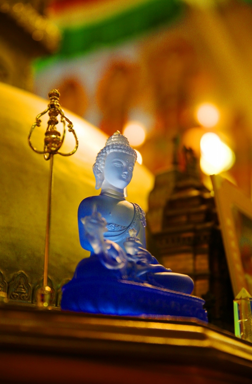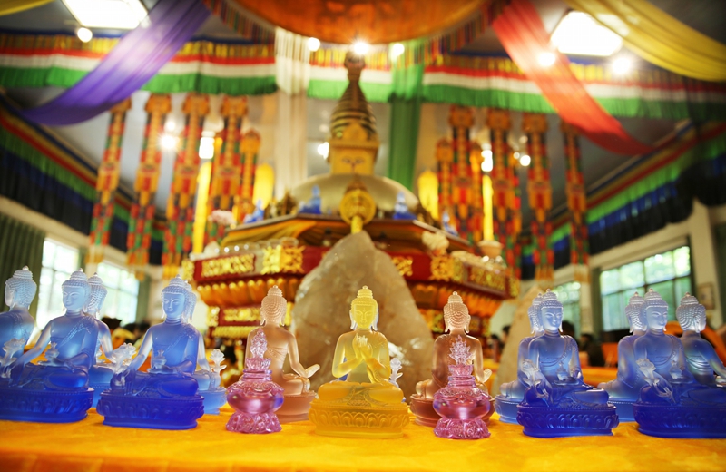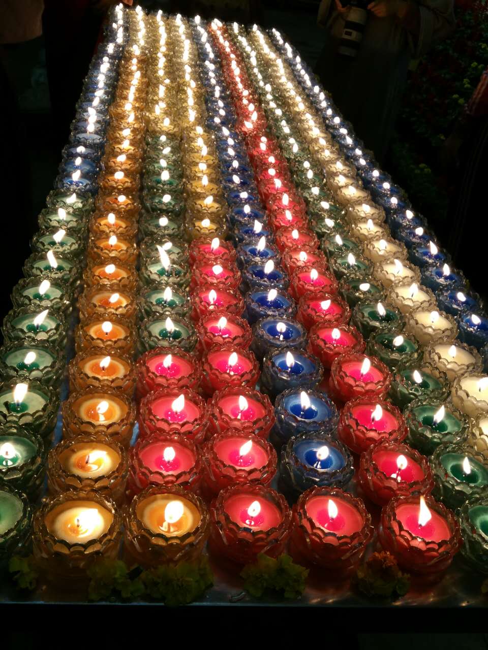 在庄严的药师佛坛城前,四众弟子虔诚地燃灯供佛,愿将光明照亮十方世界,破除累劫的无明黑暗,开启自他本具的佛性。可以在殊胜坛城进行供水、供花、供药等供养修法。