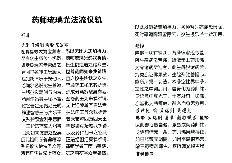 近代高僧弘一法师曾著《药师经析疑》,特意开示药师法门的三种殊胜:第一,若犯戒者闻药师名已,还得清净;第二,若求生极乐,而未定者,修药师法门,临命终有八大菩萨,乘空而来,示其道路,即于彼界种种杂色众宝花中,自然化身;第三,现生种种厄难,不如意事,悉皆消除。