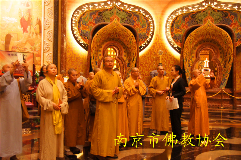 代表团一行先后参观了我市栖霞寺、佛顶寺、定林寺和高座寺等寺院,并与我会领导班子、几所寺院的负责人以及中国佛学院栖霞山分院、江苏尼众佛学院负责人就僧才培养、寺院管理、文物保护、佛教文化整理发掘、展示、体验、传承以及宗教团体自身建设等方面内容进行交流。隆相会长就南京佛教的发展现状以及佛顶骨舍利盛世重光以来南京举行的系列文化活动向成都客人进行了详细介绍。
