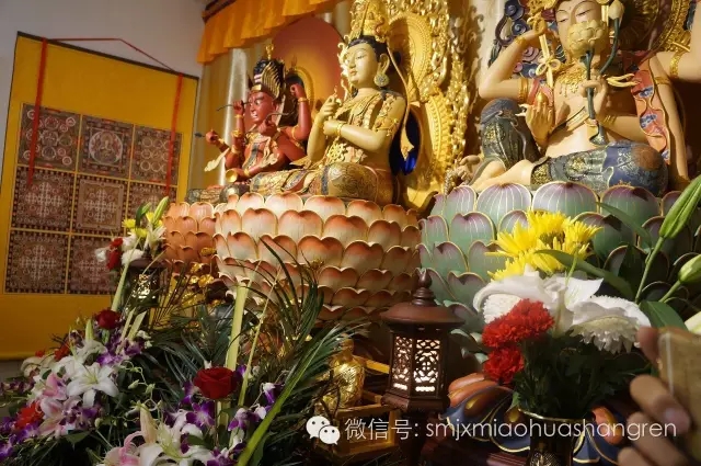 彻鸿上师为杭州金刚院大日如来、如意轮菩萨、爱染明王等木雕极彩工艺佛像开光