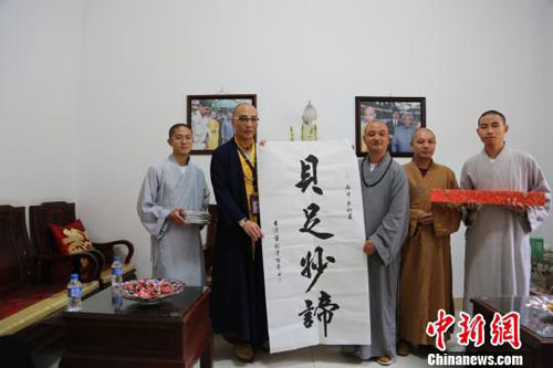 能寿大和尚赠送一幅亲自撰写的书法“具足妙谛”