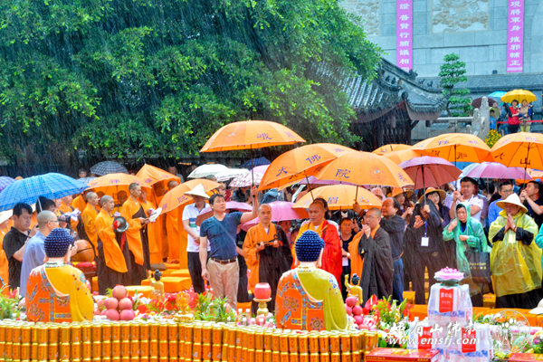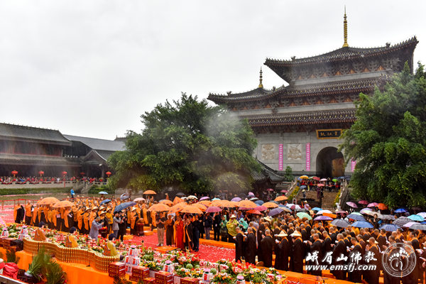 佛诞日,峨眉山大佛禅院在大雄宝殿前广场举行隆重、盛大的浴佛法会,千余名四众弟子虔诚参加法会。