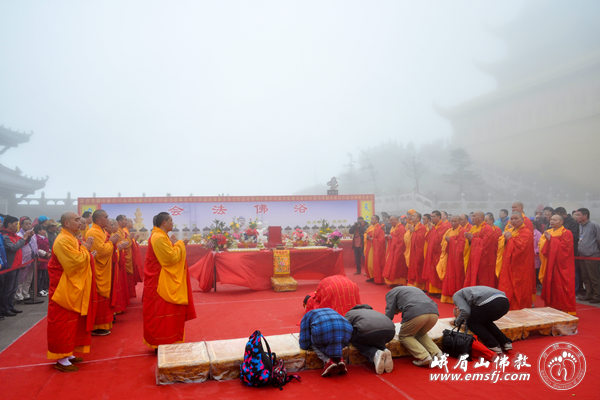 峨眉山金顶華藏寺举行拜忏法会、浴佛法会,恭祝佛陀圣诞。