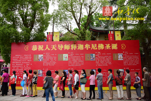 2016年5月14日,丙申年四月初八,恭逢释迦牟尼佛诞辰日,厦门南普陀寺隆重举行浴佛法会。来自全国各地的数万信众、游客共赴道场,同沐佛恩,共同祝福世界和平、国泰民安、家和业兴,祈愿大众离烦恼垢,得清净心。本次浴佛节还准备了多项互动体验项目,融入孝亲主题,与大家分享佛诞法喜的同时,通过浴心感念亲恩。