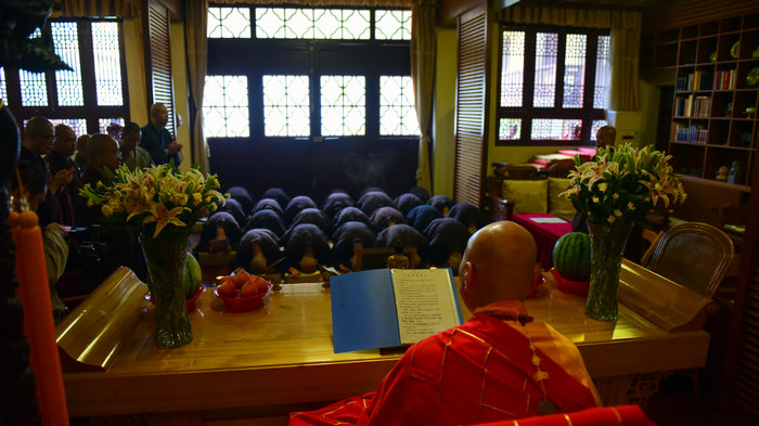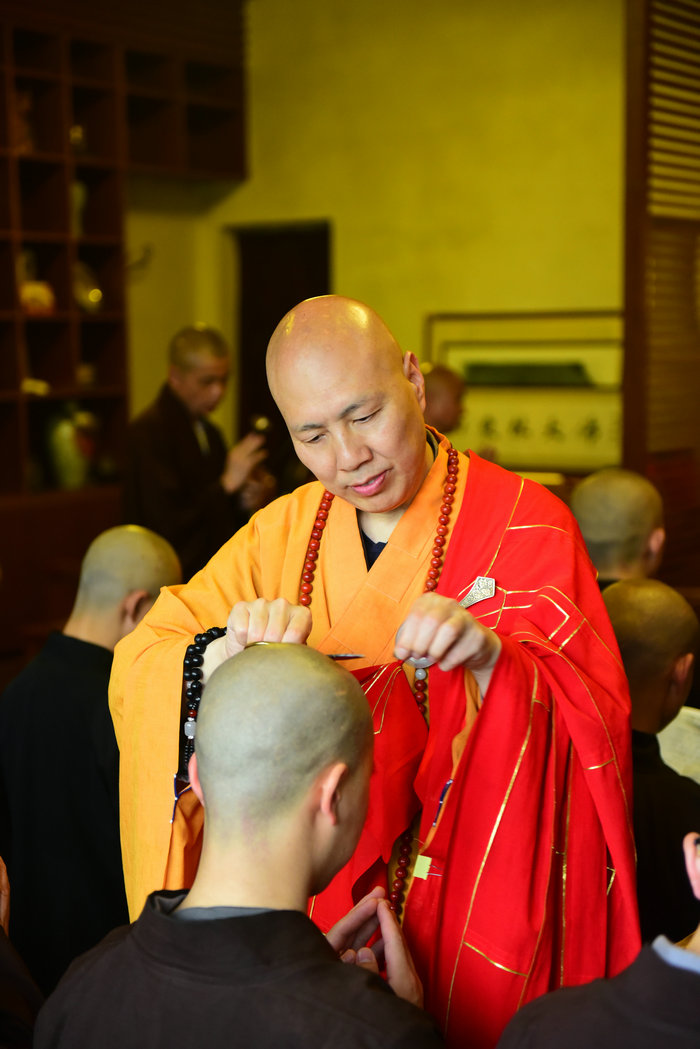 2016年5月14日,农历四月初八,适逢本师释迦牟尼佛诞辰之吉日,东林寺在方丈室为24位净人举行了出家剃度仪式。