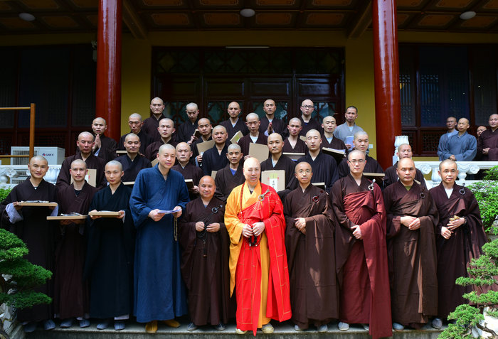 下午2点40分,本次剃度法会在回向声中圆满结束。随后大安大和尚为诸新剃度沙弥赠送礼品。最后,大众在方丈室门前合影留念。