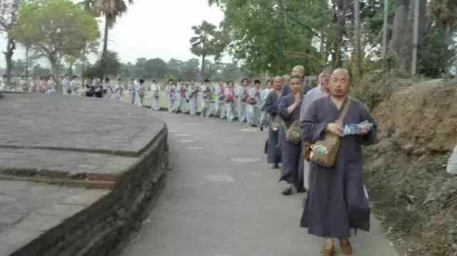 大众绕行牧女舍利塔,以感念牧女供养佛陀之功德