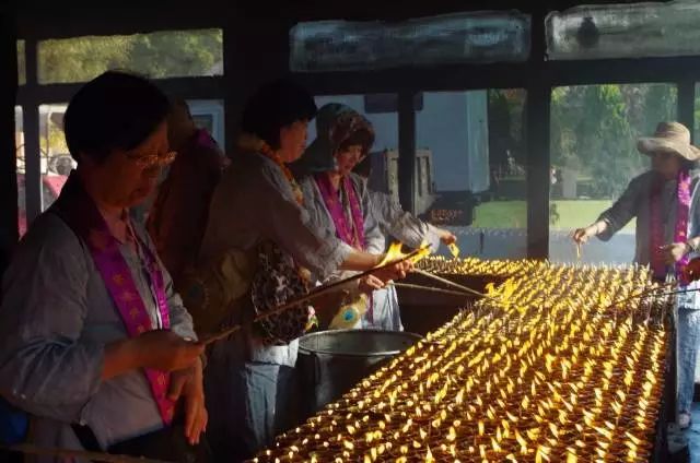 来到佛陀舍利所化金刚沙(恒河沙)时,大家点燃手中蜡烛,象征智慧的明灯,祈愿众生早证菩提!