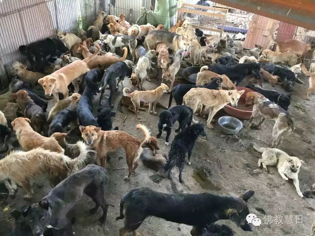 下午法师们与生命护生园的义工们到屠宰场内解救了400只狗狗。