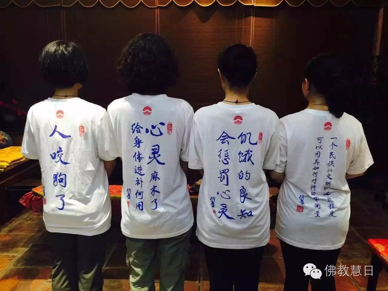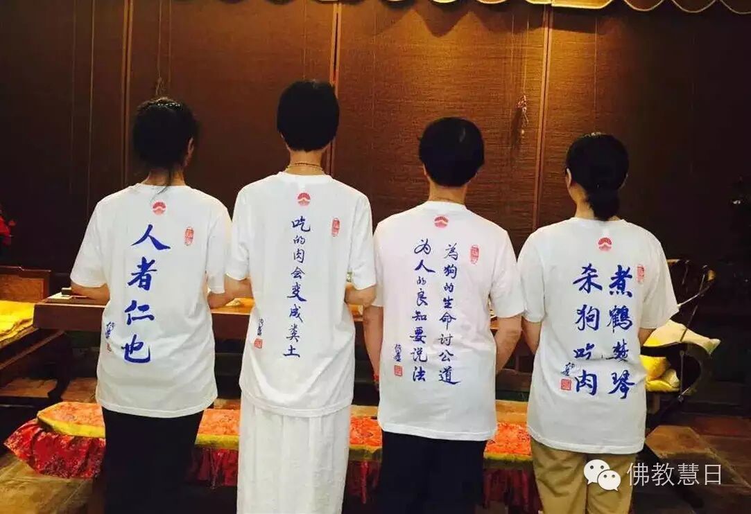 宁波慧日禅寺住持传喜法师近年来一直宣传中华传统仁爱护生理念,呼吁停止杀戮,关爱动物。2016年传喜法师设计并出资制作一批“玉林狗肉节”文化衫。夏至这一天,佛子们身着文化衫,在宁波、广西、广东等地发起吃素、放生、护生等活动。