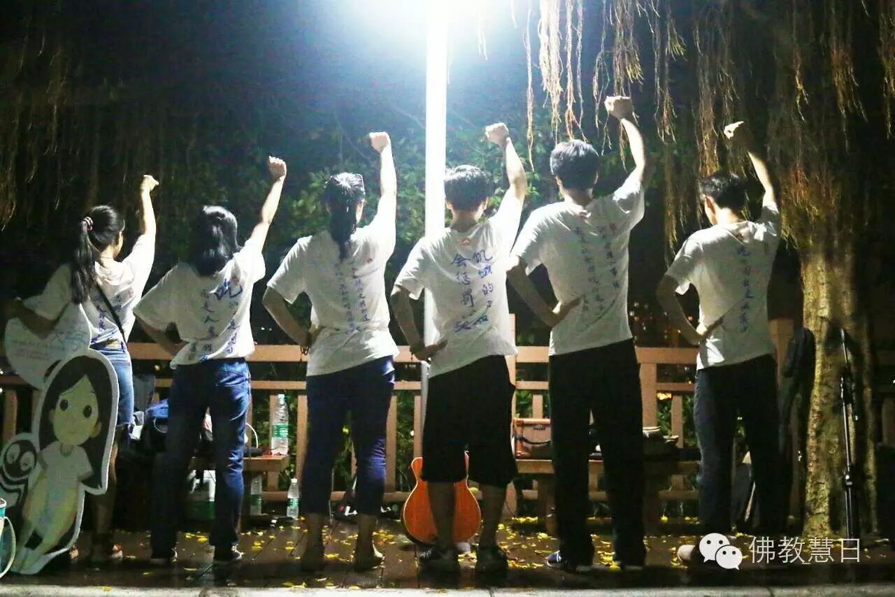 6月21日晚,广州花都湖广场,传喜法师一群年轻的弟子们在这里弹起吉他,用音声传递爱与慈悲,一时观者如云。