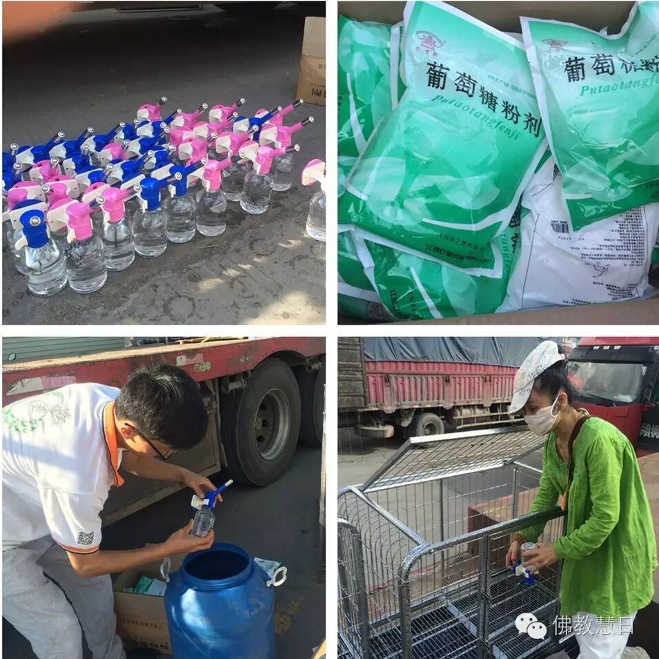 高邮生命护生园与生命之树联合赴现场救护受害狗狗。6月18日传喜法师皈依弟子高邮护国龙王庙住持果智法师与义工们携带狗笼、药品等物资出发前往玉林。