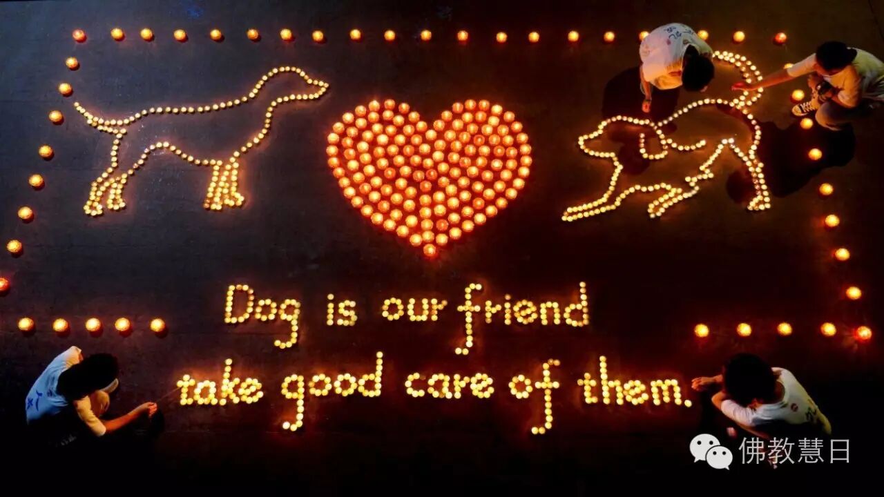 法堂结束后,供灯“狗是我们的好朋友,请照顾好牠们”。