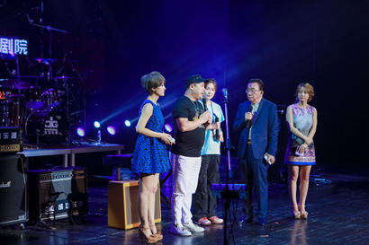 卓锦万代公司代表、主持人候耀华、王思懿、reborn组合、“与牠同行”发起人刘艳丽(摄影:杨宝迪)