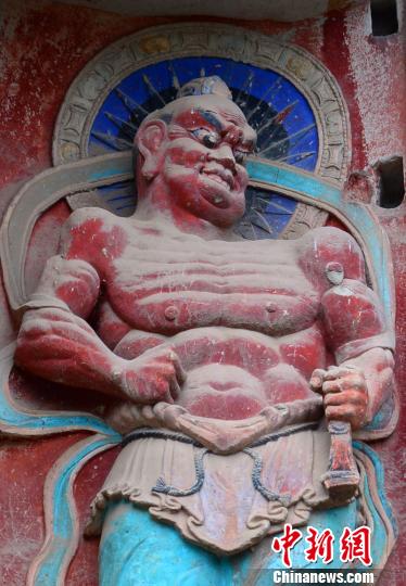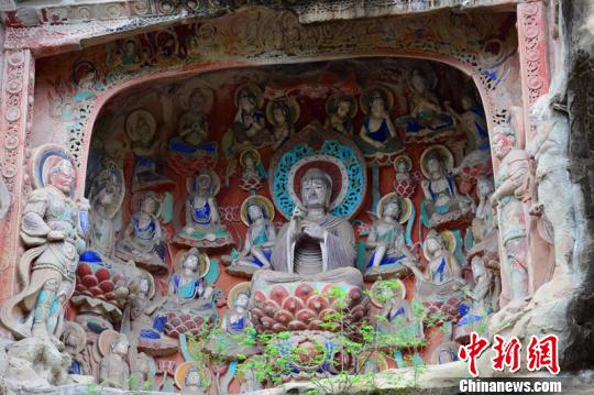 雕刻精湛、饱经风霜的巴中南龛石窟造像色彩鲜艳苗志勇摄