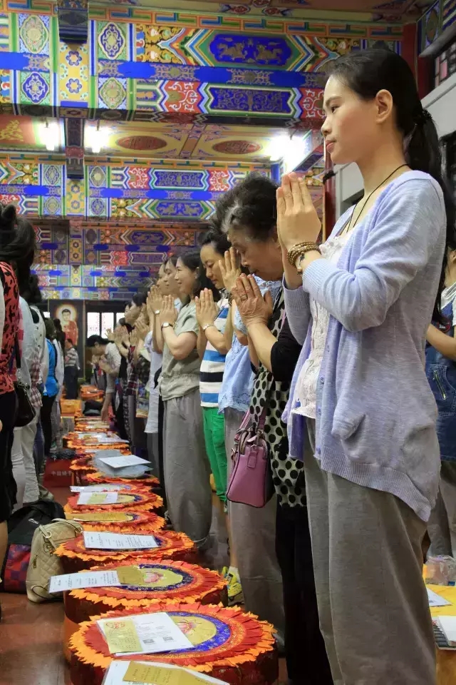 本次皈依三宝的弟子共有489位,上至80岁的老人,下到3岁的孩子,有的一家子一起前来,有的则是夫妻相伴,除了四川省内,还有从安徽、河南、山东等地赶来皈依的。他们有的激动得泪水满颊,有的则庆幸自己终于找到了家。