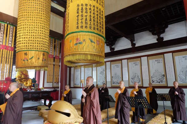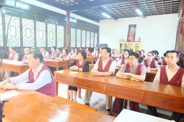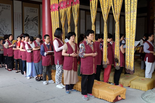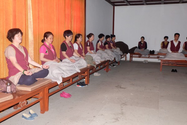 上午7点30分学员从各地来到能仁寺客堂报到,8点学员集中在禅堂行香、坐禅;9点45分,学员在大雄宝殿诵《观世音菩萨普门品》、《心经》祈福回向。下午1点30分,能仁寺方丈了法法师讲禅修,向学员介绍有关禅修的方法,大家都法喜充满,受益匪浅。下午2点45分,学员们又进入禅堂禅修,让内心获得宁静、安详、舒适,有快乐的心理体验。3点50分,禅修结束,学员们一起在能仁寺大雄宝殿前合影留念。