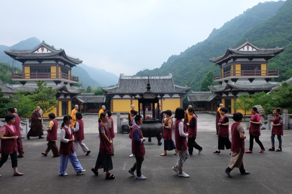 能仁寺为了给热爱佛法的游客和信众提供一个净身养生、学习交流和提升智慧的平台,丰富雁荡山旅游文化内涵,促进社会和谐,今天举行第三期“雁荡山一日禅”禅修活动,参与者有各行各业,他们是城市的白领、高管、工人、学校老师和在家信徒50余人。