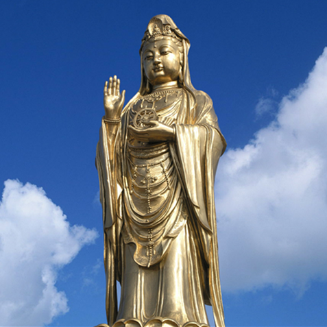 观世音菩萨又作观自在菩萨、光世音菩萨等,从字面解释就是“观察(世间民众的)声音”的菩萨,是四大菩萨之一。他相貌端庄慈祥,经常手持净瓶杨柳,具有无量的智慧和神通,大慈大悲,普救人间灾难。在人们遇到灾难时,只要念其名号,便前往救度,所以称观世音。他是西方极乐世界教主阿弥陀佛座下的上首菩萨,同大势至菩萨一起,是阿弥陀佛身边的胁侍菩萨,并称“西方三圣”。