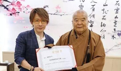 当魔术遇上佛法,变化出令人激荡的创意思惟。7月4日,国际著名魔术师刘谦到宜兴大觉寺,由佛光山开山星云大师亲自颁赠他“中国麋鹿保护大使”,以及颁赠“中国雪豹保护大使”予中国名演员王宝强。