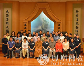 2016海峡两岸暨港澳慈善论坛”嘉宾在活动最后一天上午参访慈济香港分会,参访结束后嘉宾和慈济志工欢喜合影。(图片来源:凤凰佛教 摄影:慈济香港分会)