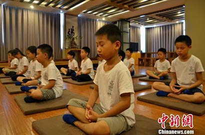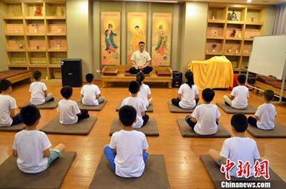 [原标题]少林都市禅堂设童学馆 孩童禅坐静思