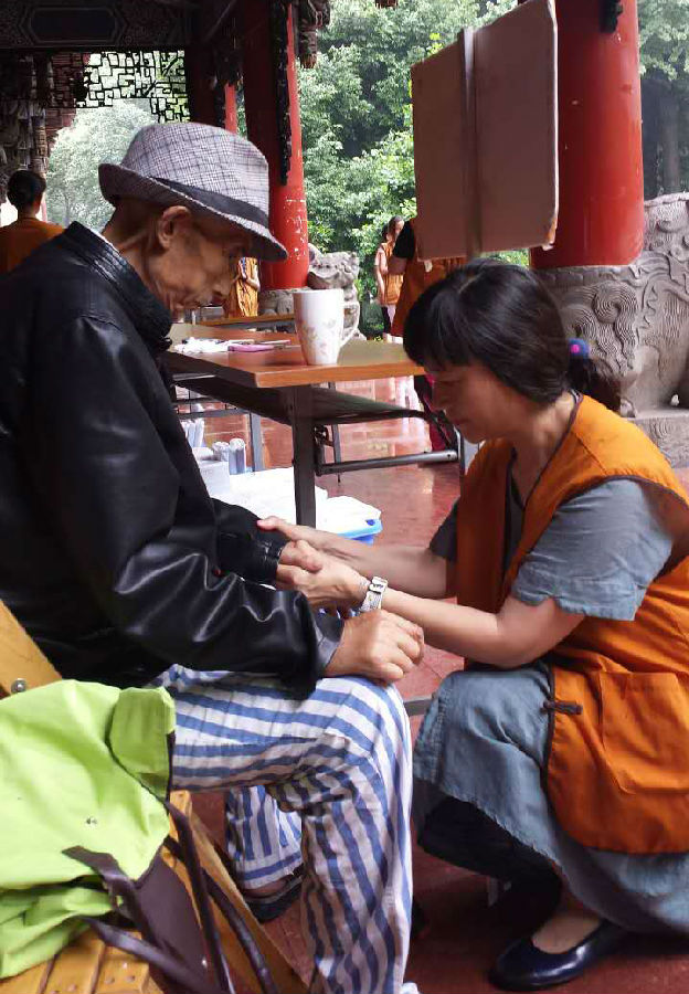妙华师兄是跟着自己的老师、同学、家人一行七人一起来皈依的,他从小学习国学,马上就要去爱尔兰留学。他说之所以选择皈依,是因为在学习传统文化的过程中发现按照佛法的标准去为人处世,自己生活和人际关系都会好一些,烦恼也会少一些。