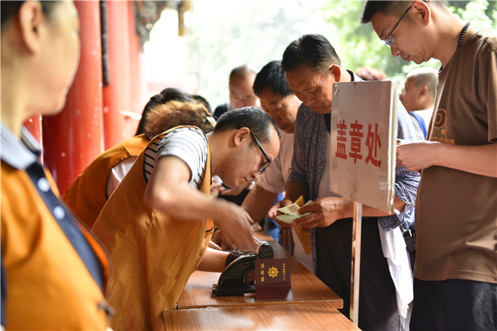 7月3日,在清凉的法雨中成都文殊院迎来了今年的第六次皈依法会。约五百名来自全国各地的信众参加此次法会,皈依成为三宝弟子。淅淅沥沥的小雨洗去了盛夏的热恼与尘劳,也开启了大家生命中清净法喜的崭新一页。