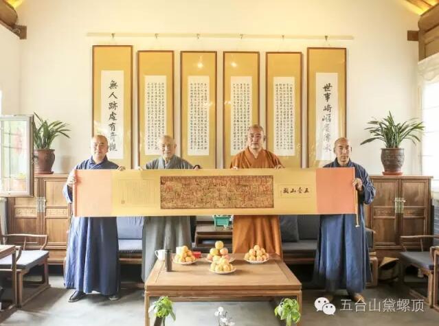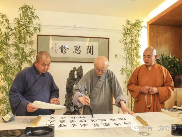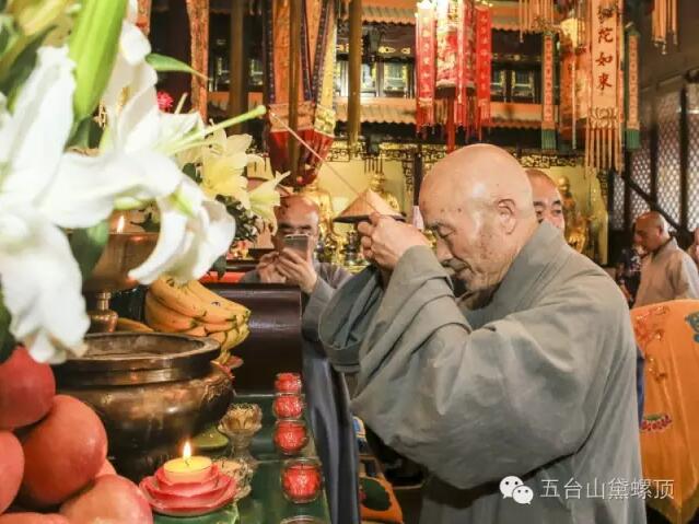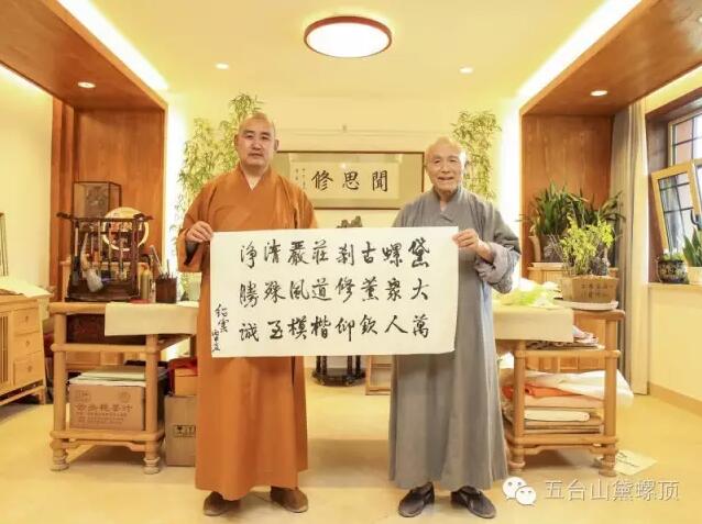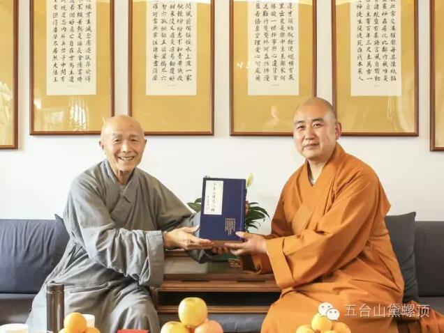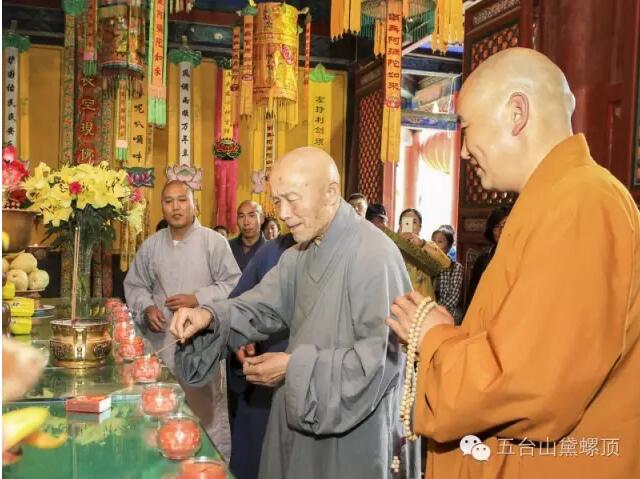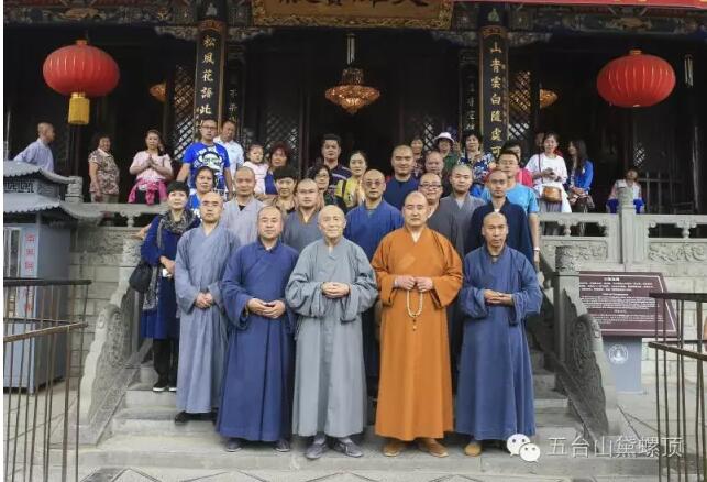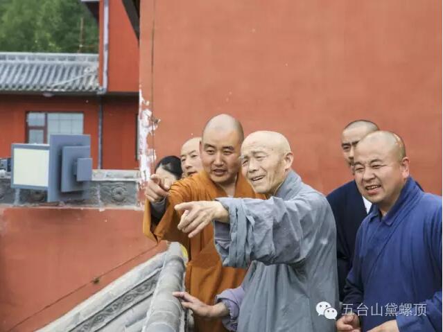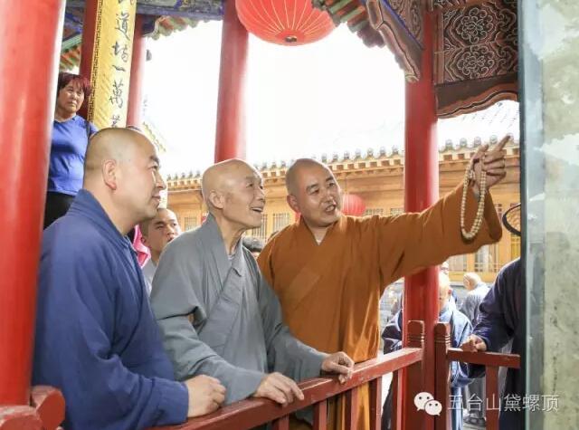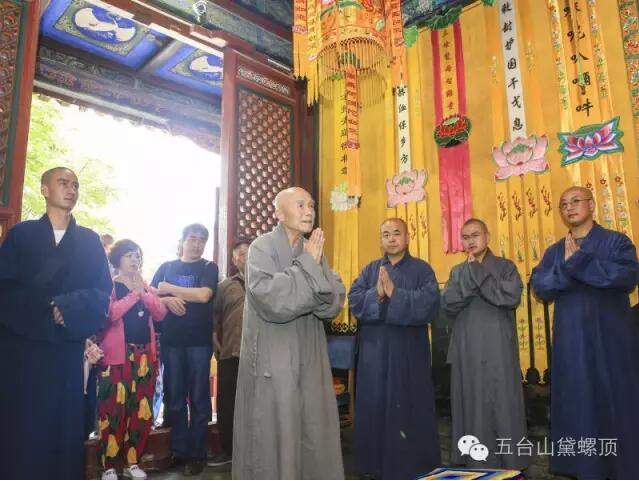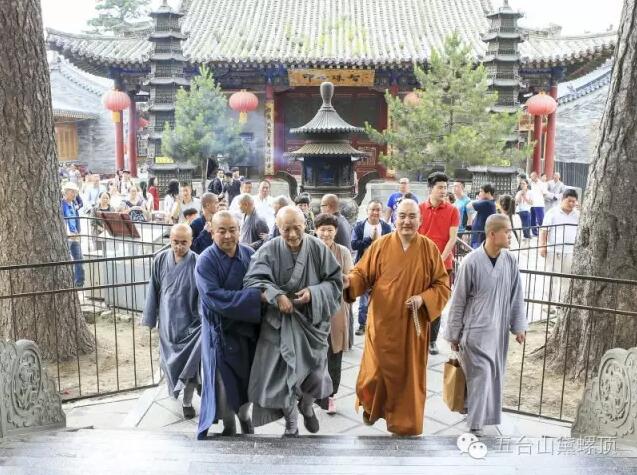 2016年7月5日(农历丙申年六月初二)下午,禅宗泰斗上虚下云老和尚的关门弟子,现已年近八旬的上绍下云长老在弟子的护持下登上黛螺顶,朝拜了五方文殊,受到了五台山佛教协会会长黛螺顶寺住持昌善法师及寺内僧众的热烈欢迎。