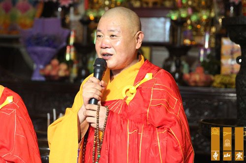 达义法师在开示中说到,每一次从加拿大到苏州、寒山寺都有回家的感觉,非常的高兴。湛山精舍与寒山寺在几年前结为友好寺院,时常交流互动。今年正逢性空长老出家80年,这次到中国四大名山供万僧斋,迎请香火,把五台山文殊菩萨的大智慧、普陀山观音菩萨的大慈悲、峨眉山普贤菩萨的大行力、九华山地藏王菩萨的大愿力把四大菩萨的智、悲、行、愿四种精神通过香火带到加拿大发扬光大,也通过北美传播到全世界。这次到寒山寺得到秋爽大和尚的热烈欢迎,非常感动,代表加拿大佛教会、湛山精舍四众弟子向秋爽大和尚及在场的各位法师、护法居士表示衷心的感谢,同时祝大家吉祥如意。