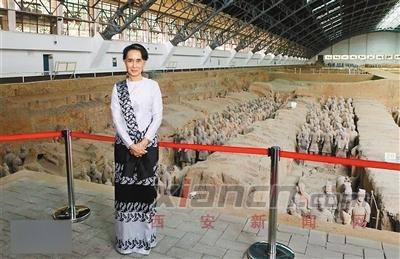 参观秦始皇兵马俑、瞻仰法门寺佛指舍利、听陕西农民介绍发展“一村一品”的经验……读过许多有关中国书籍的昂山素季,西安之行让她有机会全方位了解一个从历史深处走来的国家。