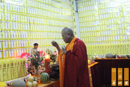 当日,法会由中国佛教协会副秘书长、江苏省佛协副会长兼秘书长、苏州寒山寺方丈、重元寺方丈秋爽大和尚主法。秋爽大和尚拈香、洒净,堂上谨设超荐牌位,期众生至诚忏悔,以消宿世冤业。