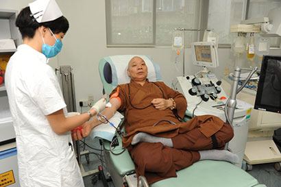 60岁法师献最后一次血 17年献血累计8200毫升