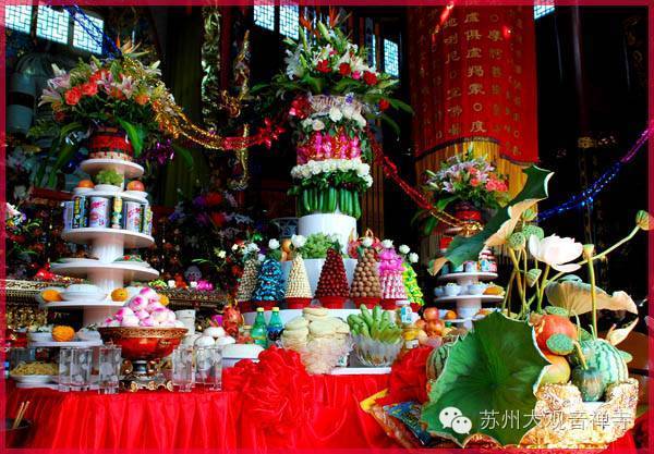 按照盂兰盆经的指示,目连尊者于农历七月十五用盂兰盆盛珍果素斋供奉母亲,挨饿的母亲终于得到了食物。 “盂兰”,倒悬的意思,倒悬形容苦厄之状,盆是指盛供品的器皿。盂兰盆斋,备百味饮食以及桃、李、杏、栗、枣五果,供此具可解救已逝去父母、亡亲的倒悬之苦;又可为在生父母添福添寿,以报答父母的养育之恩。