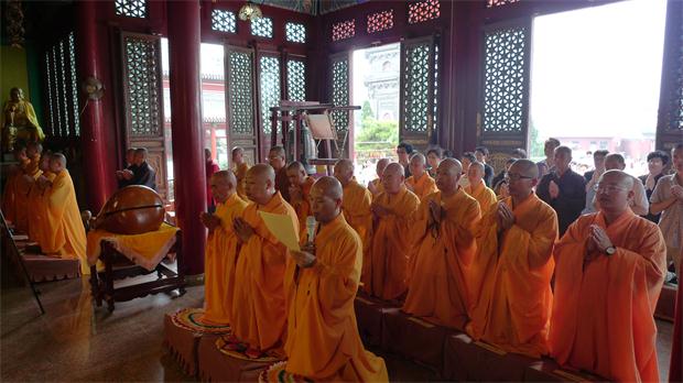 参加法会的法师有:市佛协会长、大佛光寺大尊长真广法师、虚云禅寺明舟法师、华严寺如光法师、万佛寺道泓法师、灵源寺尊行法师、观音寺印弘法师、定杨法师、道禅法师、兜率寺明月法师、普慧寺妙严法师、广慧寺果一法师、真觉禅寺(大慈阁)道悟法师、慈云寺悟亮法师、广华寺亲如法师、灵觉寺恒意法师、楞严寺妙净法师等寺院法师,长老徒孙寂禅法师在加拿大观音寺也同步举行了长老追思法会,市佛协秘书长王长革受会长委托发表了追思祭文,长老在各地的皈依弟子及信众三百余人参加了追思纪念活动。