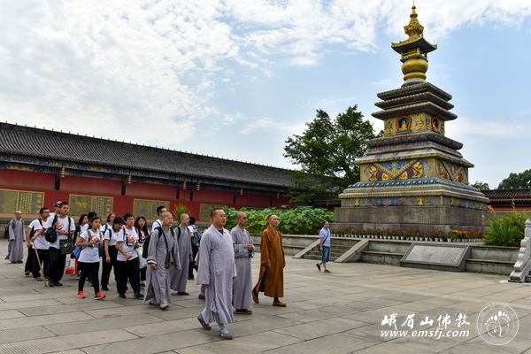 两天时间里,巡礼团在峨眉山佛协接待办主任法泽法师的陪同下还参访了金顶、万年寺、清音阁,受到各寺监院及僧众员工的热情接待。