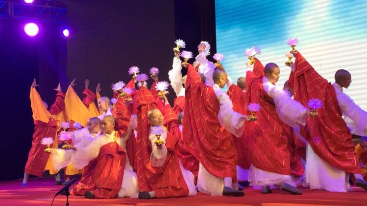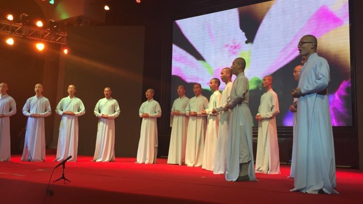 全场演出以“善”为主题贯穿,节目形式有弦乐合奏,小提琴齐奏,大合唱,比丘小合唱,舞蹈,场景,朗诵等。全僧人艺术团通过西洋管弦乐以及和声来表现佛法的真善美和天台僧众的生活及追求,这种创新既让所有观众眼前一亮,又在轻松愉悦的艺术形式中感悟到佛法的真谛和天台僧众“以徳成佛”、“礼乐安天下”的神圣追求以及助力中国梦的努力,接受到满满的正能量。现场氛围热烈,掌声不绝于耳。