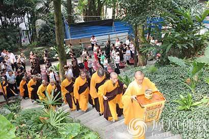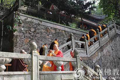洒净的僧众,绕过大殿,登上慈云殿。(图片来源:凤凰佛教 摄影:如本法师)