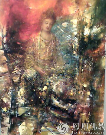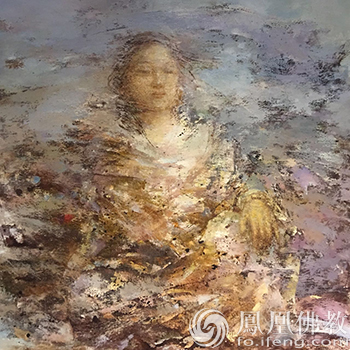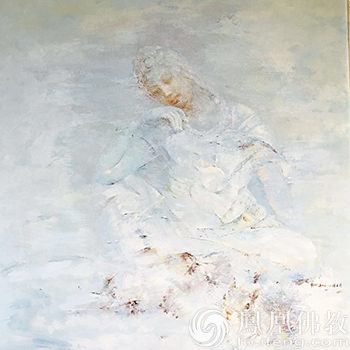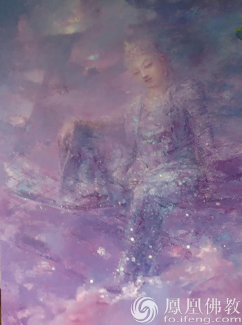 在这十几年间,他创作了很多油画作品,其风格纯净空灵、闲适优美,而画的内容则是表现各种庄严慈悲的佛像。禅道意境深深影响着他的绘画思想和手法,空即是无尽之有,真正的玄妙只有意念神知。佛菩萨的形貌在他的笔下正大雍容,圆融无碍……这些画作是他生活、心性、灵魂的诠释。让我们聆听他与山石、树木、云风交织的心灵之声……