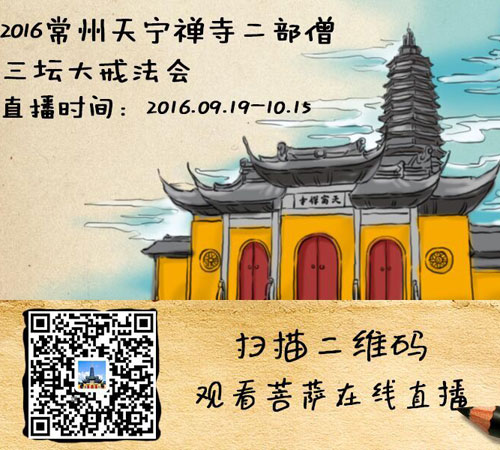为培育僧才、住持佛法,经中国佛教协会批准,江苏省宗教局同意,常州天宁禅寺暨九华禅寺于2016年9月18日至10月15日(农历丙申年八月十八日至九月十五日)举办二部僧三坛大戒法会。