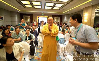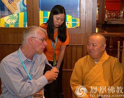 诺贝尔化学奖获得者阿龙•切哈诺沃对大和尚的理念表示赞同(图片来源:凤凰佛教 摄影:顿行)